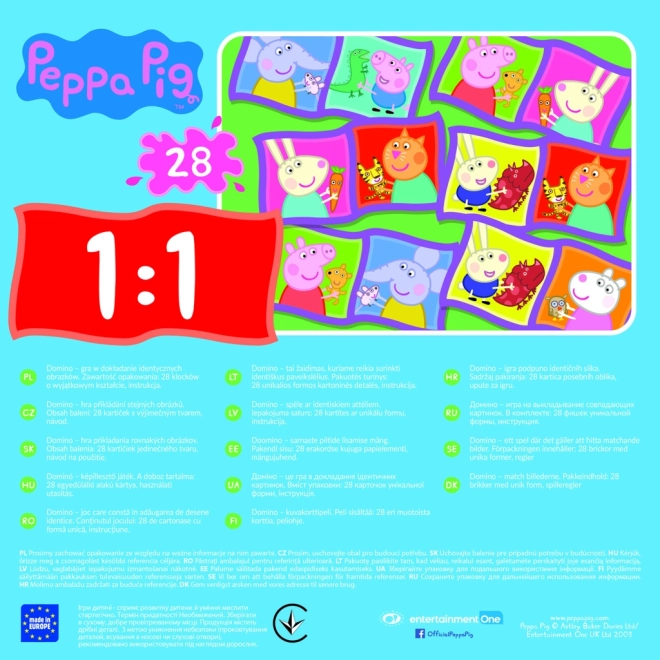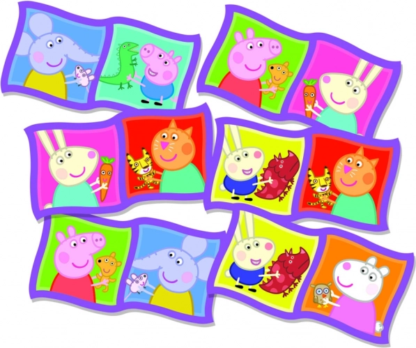 A Peppa malac dominó szórakoztató és fejlesztő játék gyerekeknek, amely fejleszti a memóriát, a mintafelismerést és a logikus gondolkodást. A játékosok azonos képeket vagy azonos számú pöttyöt próbálnak egymáshoz illeszteni. Az nyer, aki elsőként megszabadul a lapkáitól, vagy lezárja a játékot. A lapkák változatos elrendezésének köszönhetően minden parti új élményt nyújt.