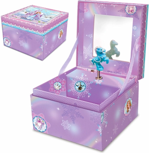Felhúzható egyszarvús zenélő ékszerdoboz, tükörrel és fiókkal 16 × 10 × 12 cm