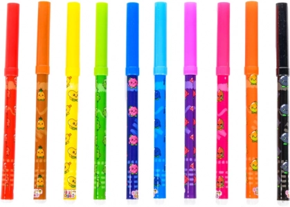 Illatos filctollak, 10 db. A rajzolás mostantól illatos móka! Használd ezeket a gyönyörű, színes filctollakat, amelyek gyümölcsillatúak. Minden színnek megvan a saját jellegzetes illata. A csomag 10 filctollat tartalmaz.