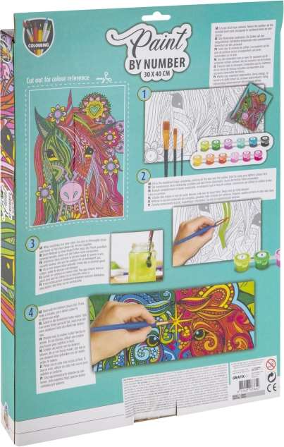 Fedezze fel a számozott kifestés varázsát, és alkosson saját képet egyszarvú motívummal. A 30 × 40 cm-es vászonkészlet mindent tartalmaz, amire szüksége van: előnyomott vásznat, akrilfestékeket és 3 ecsetet. A festés egyszerű, pihentető, fejleszti a finommotorikát és a koncentrációt is.