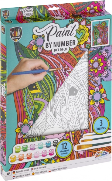 Ez a számozott kifestő készlet kezdőknek és haladóknak egyaránt ideális. A minőségi akrilfestékeknek és a három különböző méretű ecsetnek köszönhetően precíz részleteket és egyenletes kitöltést érhet el.