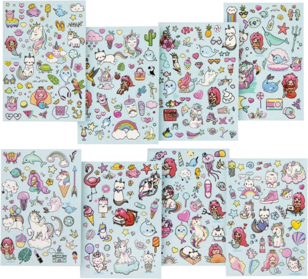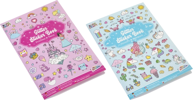 Csillogó matricás könyv: Egyszarvú, Tengeri sellő – A5-ös könyv 8 lapot tartalmaz csillogó matricákkal.