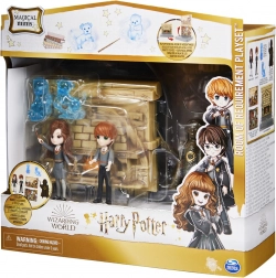 - Játékkészlet ajtóval és kandallóval, 2 figura (Hermione Granger, Ron Weasley), 2 Patrónus-figura (vidra, terrier), gyakorlóbábu, dekoratív matricák