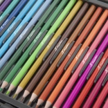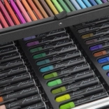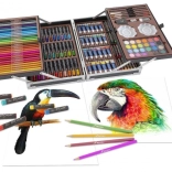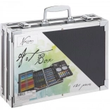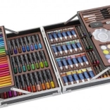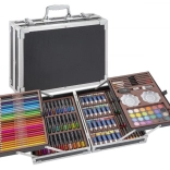 Ez a gazdagon felszerelt készlet mindent biztosít az otthoni, iskolai vagy utazás közbeni kreatív alkotáshoz. A belső polcokkal ellátott fém bőrönd mindent a helyén tart, és megkönnyíti a gyors eligazodást. A sokféle festészeti és rajzeszköz révén különböző technikákat próbálhat ki a rajztól a festésig.