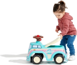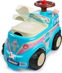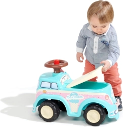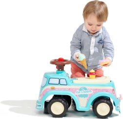 Ez a játékszer fagylaltos autó formájában büszkélkedhet vonzó dizájnnal, amely minden gyermeket lenyűgöz. Kormánnyal és dudával van felszerelve a nagyszerű irányítás és szórakozás érdekében.