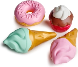 A készlet két fagylaltot, egy cupcaket és egy fánkot tartalmaz, amelyek támogatják a fantáziát és a valódi fagylaltos kalandok szimulálását.