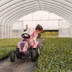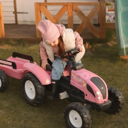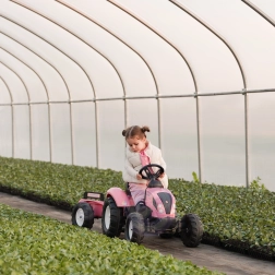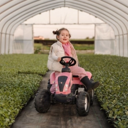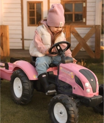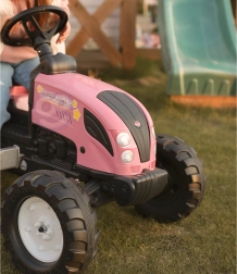 A traktor 2 éves kortól ajánlott, stabil felépítéssel, forduló első (billenő) tengellyel a könnyű kormányzásért és dudával a kormányon az interaktív játékhoz. A gyártás Franciaországban történik, ahol nagy hangsúlyt fektetnek az anyagok minőségére és biztonságára.