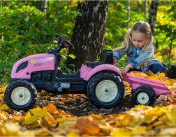 A FALK Country Star gyerek traktor minden kis sofőrt megörvendeztet, akik imádnak mozogni és a szabadban játszani. A strapabíró műanyagból készült konstrukció hosszú élettartamot és biztonságos használatot biztosít, míg a lánchajtás a hátsó tengelyen egyenletes haladást nyújt. A levehető utánfutónak köszönhetően a gyerekek játékokat vagy apróságokat szállíthatnak, és valósághű vezetési élményt élhetnek át.