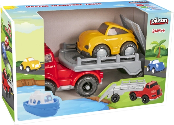 Szórakoztató homokozó szett a legkisebbeknek: műanyag teherautó kis autóval 12 hónapos kortól. 4 különböző modell és szín, biztonságos és strapabíró kivitel, mozgatható hátsó fedél és szállító funkció, valamint ergonomikus kialakítás. Minőségi műanyagból készült, a teherautó mérete 29×11,5×14 cm.