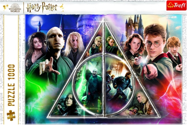 Élvezze a licencelt puzzle kirakását a HARRY POTTER – A Halál ereklyéi világának ikonikus motívumával. A készlet 1000 darabot tartalmaz, és ideális 10 éves kortól gyermekeknek és felnőtteknek. Kiemelkedik a kiváló, kalanderezett papírral és élénk színekkel, környezetbarát festékekkel nyomtatva a biztonságos, kellemes kirakásért.