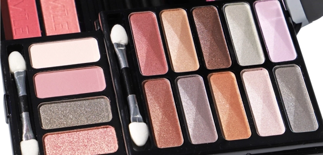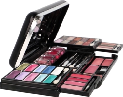 - Teljes felszerelés egyben: szemhéjpúderek, pirosítók, ajakfények, púderek, ceruza, eszközök.