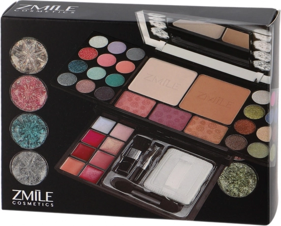 A ZMILE Diamonds univerzális kozmetikai paletta a mindennapi és esti sminkeléshez 16 szemhéjpúdert, 8 krémes ajakfényt, 8 csillámos krémet és 2 púdert kínál. A praktikus csomagolás beépített tükörrel és applikátorokkal/ecsettel ideális utazáshoz, dermatológiailag tesztelt, és megfelel a szigorú EU-szabványoknak.