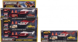 A Teamsterz Air & Sea Mentőcsapat készlet akciózónává változtatja a gyerekszobát, tele merész küldetésekkel. A rendkívül részletgazdag járművek fém karosszériával és műanyag kiegészítőkkel bírják az intenzív játékot, és a szabadon futó kerekeknek köszönhetően bármilyen felületen simán gurulnak. A helikopter kézzel forgatható rotorlapátjai minden mentőakciónak megadják a kellő realisztikus hatást.