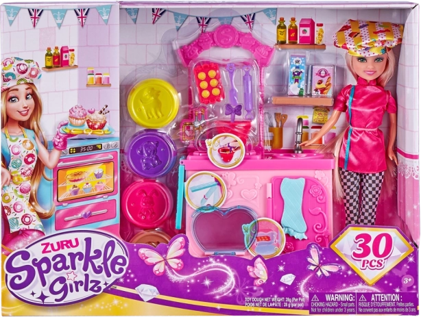 A Sparkle Girlz pék játékkészlet ideális a kis cukrászok és pékek számára, akik imádják a konyhai kalandokat. A baba készen áll a sütésre, és a gazdag tartozékkészletnek köszönhetően a gyerekek valós konyhai tevékenységeket utánozhatnak – a tészta nyújtásától a remekművek díszítéséig.