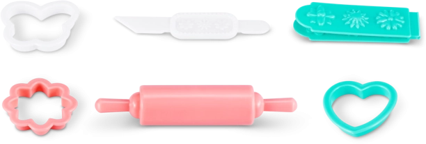 A csomag része 30 praktikus kiegészítő, például sütőformák, sodrófa és különféle dekorációk, amelyek támogatják a finommotorika, a képzelőerő és a szerepjáték fejlődését. A készlet remek ajándék a gyerekeknek, akik szeretnek alkotni és péknek játszani.