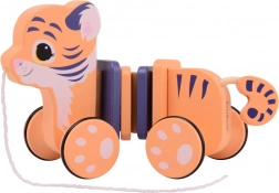 Ez a vidám, minőségi fa húzogatós játék kerekekkel rendelkezik a lábak helyett, ami egyenletes mozgást biztosít a zsinóron húzva. Mozgás közben a teste hullámzik a hátán lévő színes téglalapoknak köszönhetően, ami felkelti a gyerekek figyelmét és támogatja a színek felismerését. A játék FSC tanúsítvánnyal rendelkező fából készül, ami garantálja, hogy fenntarthatóan kezelt erdőkből származik.