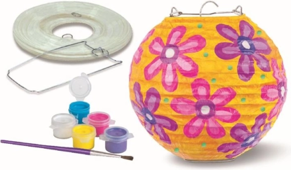 A készlet tartalmaz lampiont, festékeket és ecsetet, amelyek lehetővé teszik, hogy egyedi dekorációt alkosson.