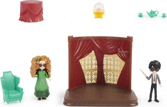 A készlet a Harry Potterből ismert ikonikus jóslástan tantermet tartalmazza, beleértve a varázslatos kristálygömböt és jövendölési kellékeket az autentikus élményért.