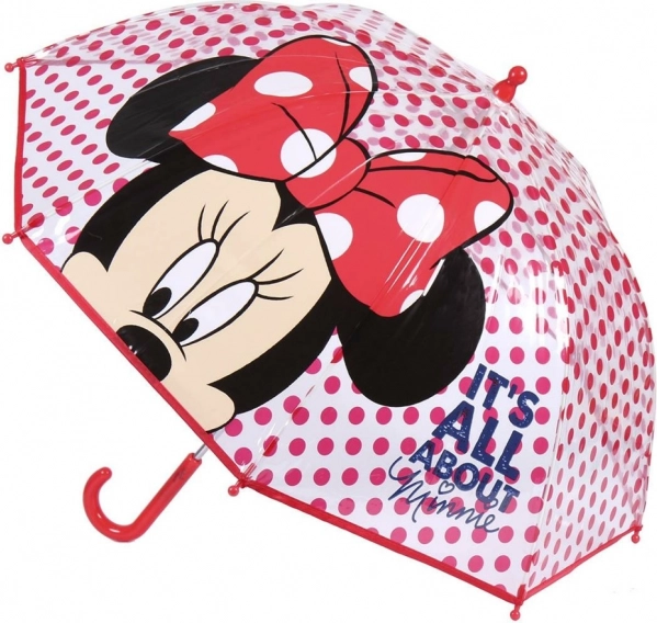 Stílusos és vidám Minnie egér esernyő a Disney licenc alapján, mely tökéletes választás gyerekek és fiatalok számára. Ez a gyönyörű piros esernyő Minnie egér karakterével és az 'It's all about Minnie' felirattal van díszítve, ami minden rajongónak elnyeri a tetszését.