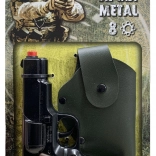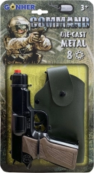 Rendőrségi pisztoly Command tökéletes játék a kicsi törvényőrök számára. Ez a nyolclövetű fém pisztoly valósághű megjelenést kínál, ráadásul bőr tokkal szállítják a könnyű viselés érdekében.