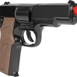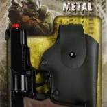 • A pisztoly fém testtel rendelkezik a valósághű megjelenés érdekében, és műanyag markolattal a kényelmes fogásért.