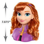 Anna fésülhető feje rengeteg hajformázási lehetőséget kínál! Annának ikonikus, fényes vörös haja van, amely ideális a fésüléshez és a formázáshoz. A styling fej 13 szórakoztató kiegészítőt tartalmaz viseléshez és megosztáshoz, köztük egy hajfésűt, négy hajcsatot, három felpattintható csatot, két hópelyhet, két hajgumit és egy nagy hajcsatot. A kicsi gyermek imádni fogja Anna hajának fésülését, és a bájos hajcsatokkal formázni és díszíteni Anna fényes, omló fürtjeit. Korosztály: 3+