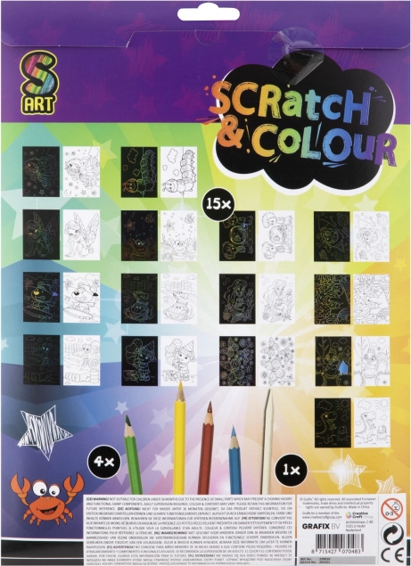- Teljes felszerelés: kaparóeszköz és 4 színes ceruza a csomagban