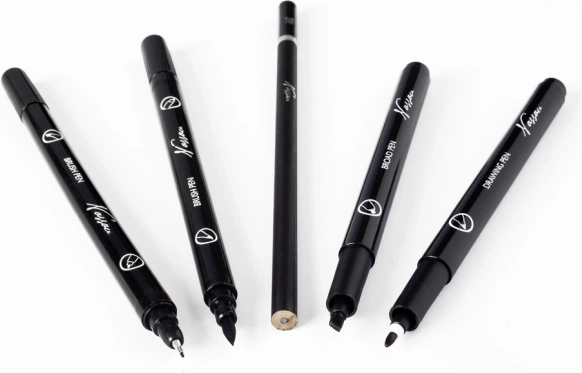 A készlet része két kétvégű filc brush tip és fine tip 1 mm kombinációval a változatos húzásokért, egy 3H grafitceruza vázlatokhoz és előrajzoláshoz, egy kerek hegyű marker 1 mm az egyenletes vonalakhoz és egy kalligráfiai marker 3 mm a karakteres talpas húzásokhoz. Ideális bullet journalhoz, meghívókhoz, kártyákhoz, illusztrációkhoz és műszaki vázlatokhoz.