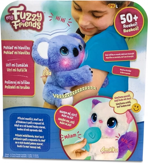 Fedezd fel a My Fuzzy Friends sorozat interaktív plüss koalájának, Edának varázsát. Ez a bújós barát több mint 50 különféle módon reagál érintésre és interakcióra, beleértve a hangokat és a mozgásokat. Edának speciális ízületei vannak, amelyek lehetővé teszik, hogy átölelje a gyerek karját és hozzábújjon. A koalát simogathatod, csiklandozhatod, megetetheted, megtörölheted az orrát, sőt elaltathatod is.