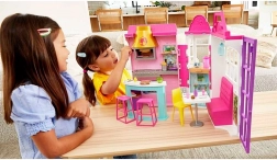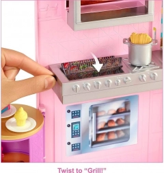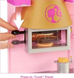 A gyerekek részeseivé válhatnak a Barbie étterem életének, ahol segíthetnek Barbie® babának (*nincs mellékelve*) rendeléseket felvenni és kényelmes ülést biztosítani a vendégeknek. Hat játszófelülettel sok lehetőség nyílik történetmesélésre.