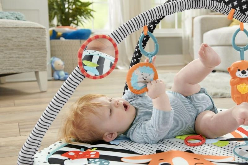 A 3 az 1-ben vidrás játszószőnyeg a fények, a zene, a kontrasztos minták és a textúrák kombinációjával támogatja babája első készségeit. Két puha, íves rúd hordozza a tükröt, a csörgőket és a BPA-mentes rágókát, míg a bájos, fényekkel és hangokkal ellátott vidra akár 15 percnyi dallamot játszik és finom fénnyel világít a megnyugtató játékhoz.