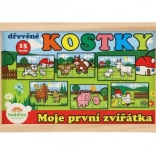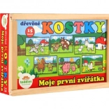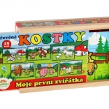 Fa kockák színes képekkel háziállatokról, amelyek ideális választás a legkisebb gyerekek számára. Segítenek a logikus gondolkodás, a fantázia és a finom motorikus képességek fejlesztésében.