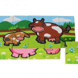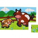 Fa kockák különböző háziállatok színes képeivel, amelyek nagyszerű eszközök a gyerekek fejlődéséhez. A helyes összeállítás során megjelenik az egyik hat kép közül, ezáltal támogatva a legkisebbek logikus gondolkodását és fantáziáját. Az építés és rombolás során a gyerekek megértik az egyensúly és az ok-okozat alapjait.