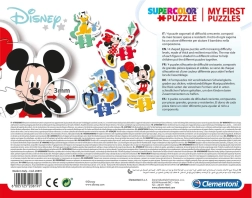 Négy színes kirakó MICKEY EGÉR motívummal a legkisebbeknek, fokozatos építéssel 3, 6, 9 és 12 darabbal. A nagy és erős darabok kb. 3 mm vastagok, a kis kezek számára könnyen megfoghatók, és támogatják a kézügyességet, a kéz–szem koordinációt és a téri tájékozódást. Ideális 2 éves kortól.
