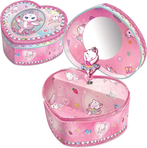 Stílusos, gyerekeknek készült, macska alakú ékszertartó, amely ötvözi a bájos megjelenést és a funkcionalitást. Kinyitáskor automatikusan megszólal egy melódia, amely kellemesebbé teszi a fülbevalók, gyűrűk és apró kiegészítők elpakolását. Kompakt mérete elfér polcon és íróasztalon is, a biztonságos anyagokat pedig a szülők és a gyerekek egyaránt értékelik.