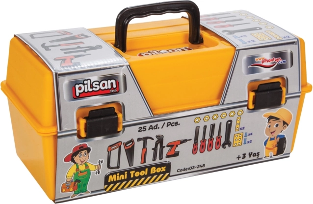 Fedezd fel a szórakoztató és biztonságos tanulást a Pilsan gyerek szerszámkészlettel (34 db). Ideális szerepjátékhoz, ahol a gyerekek kipróbálhatják a kis mester munkáját. A mellékelt szerelőlapnak köszönhetően a tevékenységek valósághűbbek, a gyerekek pedig gyakorolhatják a csavarozást, a fogást és a kéz–szem koordinációt.