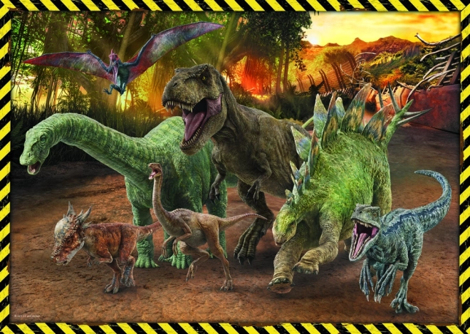 Ez a minőségi puzzle a JURASSIC WORLD legendás dinoszauruszainak motívumával lenyűgözi a gyerekeket és a felnőtteket egyaránt. A 200 precízen vágott darab kellemes kihívást nyújt, és összeállítva a gyerekszoba szép dekorációja lesz.