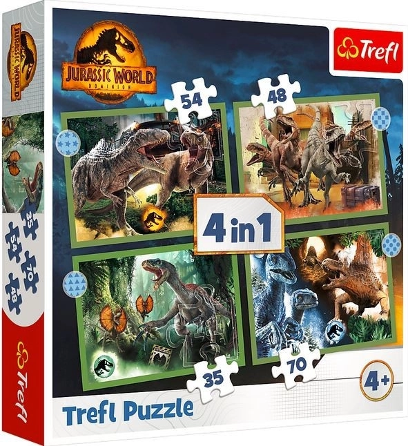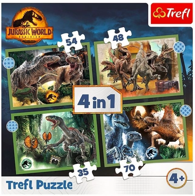 Merüljön el a dinoszauruszok lenyűgöző világában ezzel a 4 az 1-ben puzzle készlettel, amelyet minden Jurassic World-rajongó számára terveztek. Összeállítás után négy látványos kép várja, mindegyik 285 x 205 mm méretben.