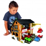 A Play House autószerelő műhely valósághű megjelenést kínál kétszintes műhelyével és működő elemeivel, amelyek támogatják a kreatív játékot.