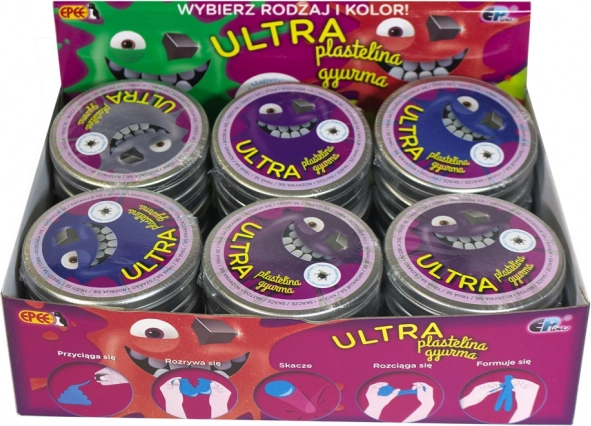 Ultra gyurma kiváló antistressz eszközként működik. 8 színkombinációban elérhető, amelyek tartalmaznak klasszikus színeket, mint a lila és zöld, valamint fémes csillogásokat, mint a sötétkék, réz, ezüst és arany. 3 éves kortól ajánlott, ami ideálissá teszi kreatív játékra és relaxációra.