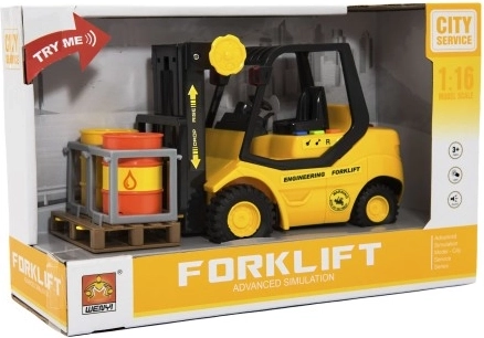 Targoncás emelő műanyag 23cm lendkerékkel, elemmel, hanggal és fénnyel dobozban 29x19x12cm