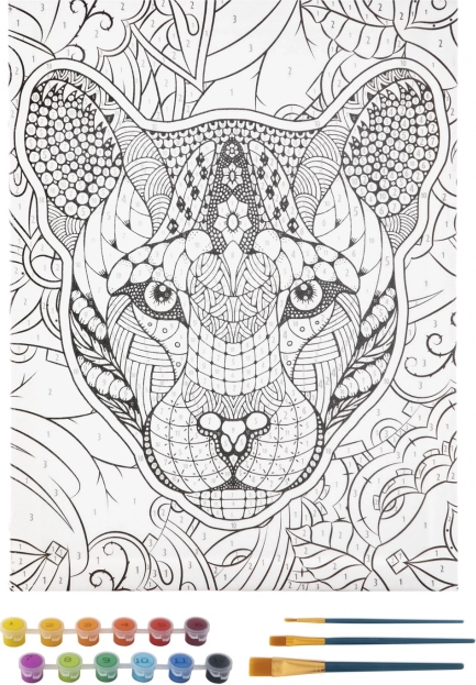 Váljon egy időre festővé, és alkosson saját, tigris motívumú képet. Az eljárás egyszerű: a számozott mezőket azonos számú festékekkel tölti ki. A számozásnak köszönhetően a végeredmény biztos a kezdők számára is, mégis örömöt okoz a haladóknak is. A készlet támogatja a türelmet, a kikapcsolódást és a kreatív önkifejezést.