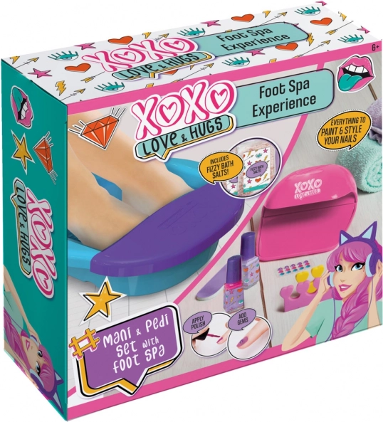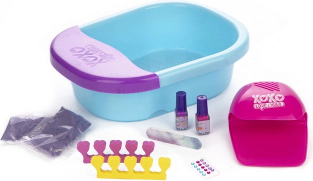 Kényeztesse kezét és lábát otthoni wellness-szel a XOXO készlettel. Minden szükséges eszközt tartalmaz a szép, ápolt körmökhöz: lábfürdő tálat, UV/LED sütőlámpát, körömlakkokat, díszköveket, reszelőt, habos lábujjelválasztókat és pezsgő sókat a relaxáló fürdőhöz.