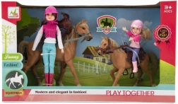 Ez a csodálatos készlet ideális választás minden gyereknek, aki szereti a lovakat és arról álmodik, hogy lovas legyen. A készlet részeként két baba található lovas ruhában, sisakokkal, kalandra készen. Kiváló minőségű és tartós anyagok biztosítják, hogy a készlet akár a legmozgalmasabb játékot is bírja.