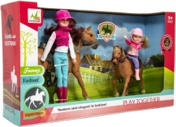 Gyönyörű készlet kis lovak kedvelőinek támogatja a kreatív és képzeletbeli játékot. Két babát és lovaikat tartalmazza, 3 éves kortól ajánlott.