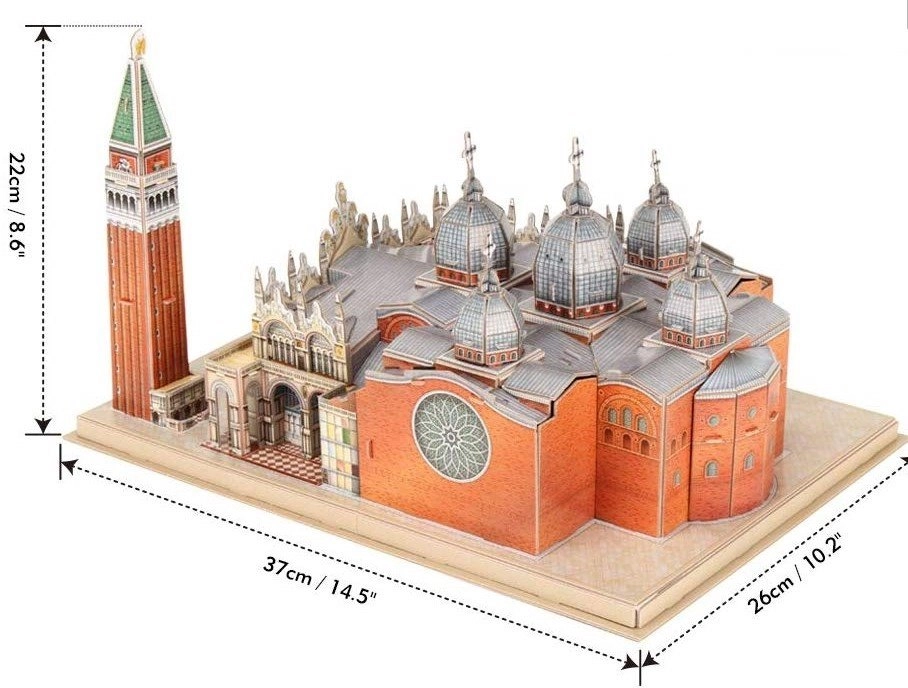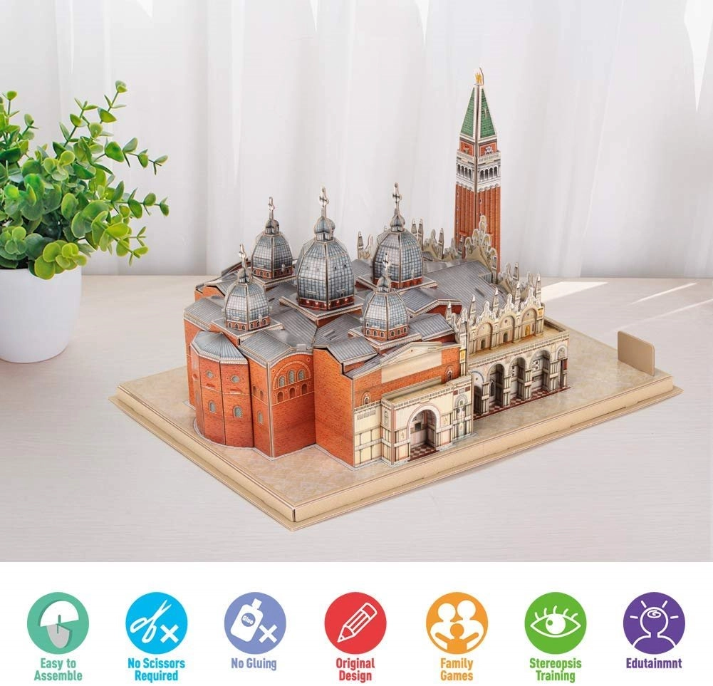 Fedezd fel Velence varázsát a Szent Márk tér részletgazdag építőkészletével. A National Geographic kiadású CUBICFUN 3D puzzle speciális, többrétegű habból készül, amelyet laminált, nyomtatott papír borít – ez biztosítja a gyönyörű színeket és a hosszú élettartamot. Az elemek előre kivágottak – csak óvatosan ki kell törni őket, majd az útmutató szerint összeállítani.