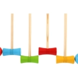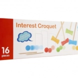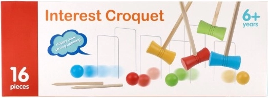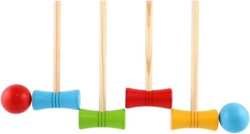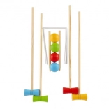 Élvezd a vidám délutánokat a fa krokettel, amely fejleszti a koordinációt és pontosságot. Helyezd el a kapukat az útmutató szerint, és az ütőkkel juttasd át a golyót minden kapun.
