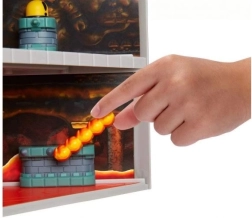 A Deluxe Super Mario és Bowser hangot adó vára játékkészlet lehetővé teszi, hogy felfedezd a Super Mario videojátékok egyik klasszikus pályáját. A készlet része egy exkluzív, 9 cm-es Bowser figura egy interaktív környezetben működő mechanizmusokkal és autentikus játékhangeffektekkel. Felemelheted és leengedheted a felvonót, megpörgetheted a tűzgolyókat, kinyithatod a ketrec alját, és legyőzheted Bowsert a csapóajtó aktiválásával, hogy a lenti lávába ejtsd.