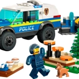 - K9 rendőrségi SUV, utánfutó, 3 akadály (billenő hinta, ugróakadály, lépcsők), kiképzőpálya jelenet, 2 rendőr minifigura, kutya és kölyök figura, kiegészítők (kefe, zseblámpa, lapát, 2 jutalomfalat)