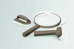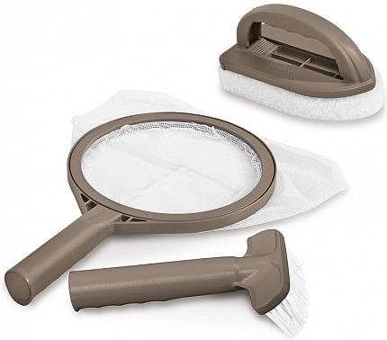 A készlet tartalmaz egy ívelt kefét a belső oldalfalak tisztításához, egy szennyeződésfogó hálót és egy tisztítószivacsot a szennyeződések eltávolításához.